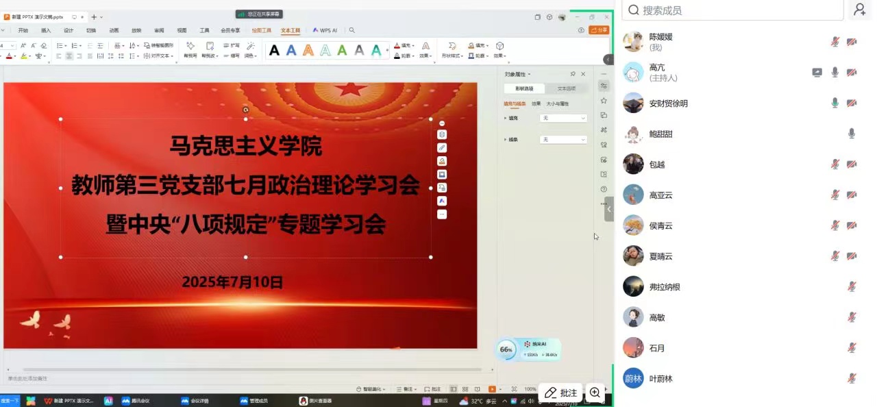 7月10日,马克思主义学院教师第三党支部通过腾讯会议平台召开七月政治理论学习会议,专题开展深入贯彻中央八项规定精神学习教育。支部全体党员参加会议。