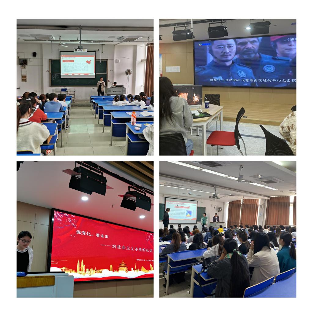 回望党史,邓小平关于“社会主义本质”的论断彪炳史册,展望未来,习近平新时代中国特色社会主义思想实现社会主义本质论的新发展。为抓好新时代大学生党史学习教育,着力讲好党的故事、革命的故事、英雄的故事,厚植爱党、爱国、爱社会主义的真情实感,让红色基因和革命薪火代代传承,近日,马克思主义学院思政理论课全体专兼职教师,立足“毛泽东思想和中国特色社会主义理论体系概论”课程内容,依托课堂教学组织开展“说变化,看未来——对社会主义本质的认识”专题学习活动,将党史学习教育有机地融入课堂,引领广大学生明晰社会主义本质,深入学习领会马克思主义中国化的重要成果。