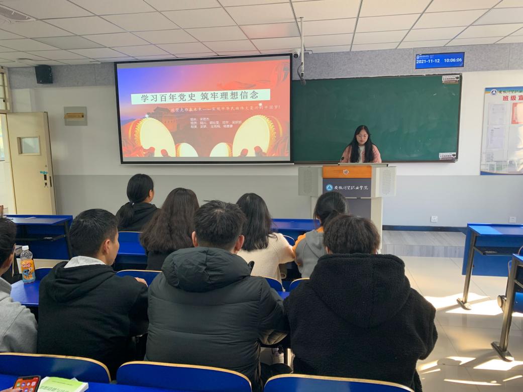 《思想道德与法治》课程的第二章是《追求远大理想,坚定崇高信念》,在系统教授理想信念是什么,什么是科学的理想信念以及如何实现人生理想这三个问题后,《思想道德与法治》教研室组织了第二次课堂实训教学活动,各实训小组成员分工明确、通力合作,制作了图文并茂的PPT汇报材料,有的同学以时间为主线从整体上回顾了百年来中国共产党所走过的艰辛历程、所创造的历史伟业,从党的光辉历程中汲取砥砺奋进的精神力量;有的同学以重大历史事件为切入点,将长征路上的动人故事娓娓道来,感悟红军战士为革命胜利、为人民解放甘于奉献、不怕牺牲的大无畏精神;有的同学则通过诗词朗诵、唱红歌、自制短视频来表达关于党史学习教育的心得体会。同学们在理论学习和实训教学中深刻认识到红色政权来之不易、新中国来之不易、中国特色社会主义来之不易,深刻体悟到中国共产党为什么能、中国特色社会主义为什么好、马克思主义为什么行,进一步筑牢了信仰之基、把稳思想之舵。