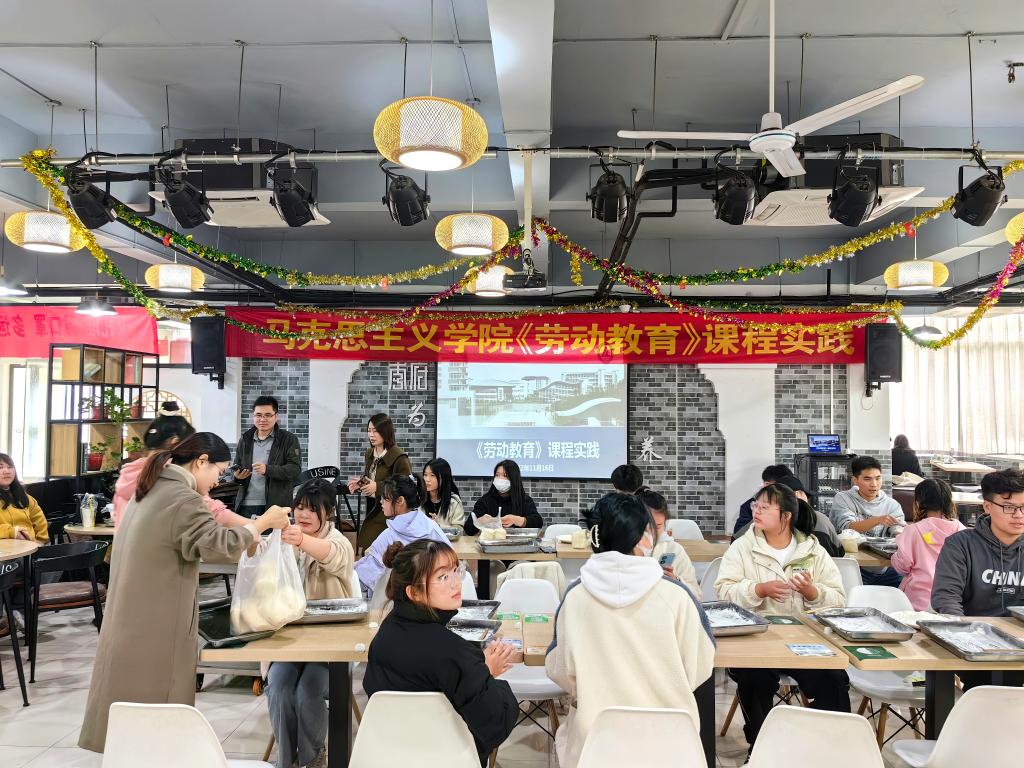 为落实新时代“五育”融合实践下的劳动教育,充分发挥实践育人的独特优势,促进学生德智体美劳全面发展,11月16日下午,马克思主义学院开展了一场别开生面的劳动教育实践活动——做自己的主“饺”。该院教师和来自不同专业的18名学生代表参加了本次活动,学校食堂为本次活动提供专门场地设施和食材。