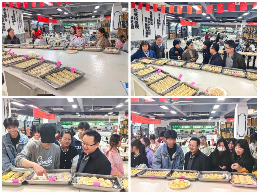 下午两点,师生们准时到达食堂一楼并按照防疫工作要求做好卫生消毒工作,并在统一安排下领取食材和器具。活动现场欢声笑语不断,师生们一起讨论包饺子的技巧,共同交流中华传统美食的制作流程,体悟劳动的无限魅力。