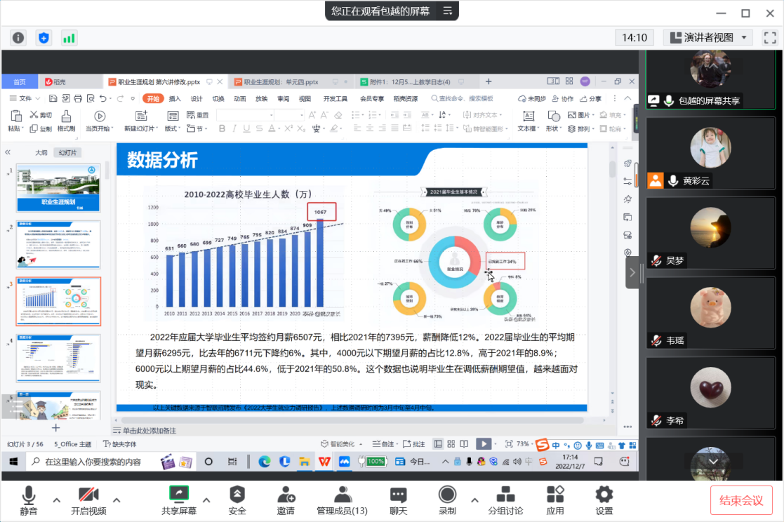 12月7日,《职业生涯规划》课程组在线上召开第四次集体备课会,课程组全体老师参会。