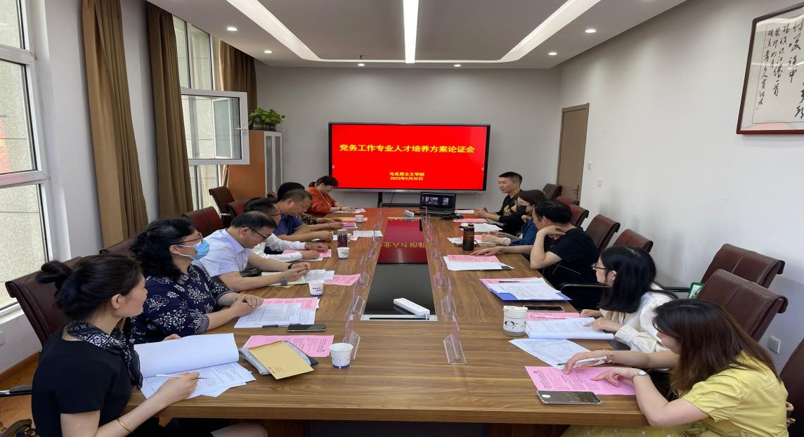 5月30日上午,马克思主义学院党务工作专业人才培养方案论证会在马院品读室举行。安徽文达信息工程学院纪委书记唐立军博士、安徽职业技术学院朱凤荣教授、安徽新闻出版职业技术学院基础部支部书记刘红兵、合肥金智人力资源服务有限公司总经理汪张明及马克思主义学院徐明、徐莲、魏磊等专家出席此次论证会。会议由马克思主义学院副院长张少兵线上主持,副院长崔学明及相关教师参会。