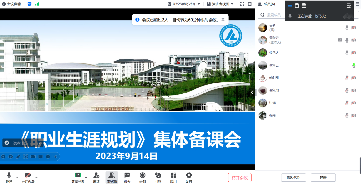 此次集体备课会有助于“职业生涯规划”任课教师不断改进教学方法、提升教学水平、提高教学质量。