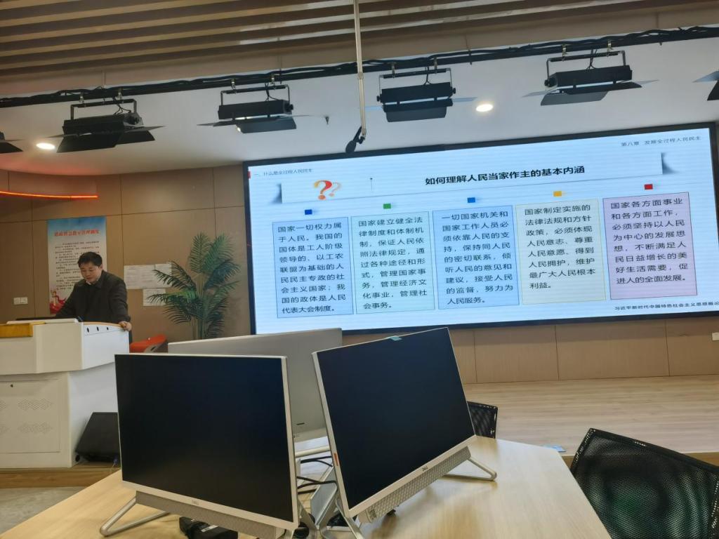 备课会上,洪妮、王媛、杜娇锦、储锐四位老师作为第七章的主讲人,从社会主义现代化建设的教育、科技、人才战略等四个方面进行讲解,分享了该专题的详细备课教案。张瑞琪、叶蔚林、张珍贤、张艳霞四位老师围绕发展全过程人民民主、坚定制度自信等四个方面分享了备课心得。