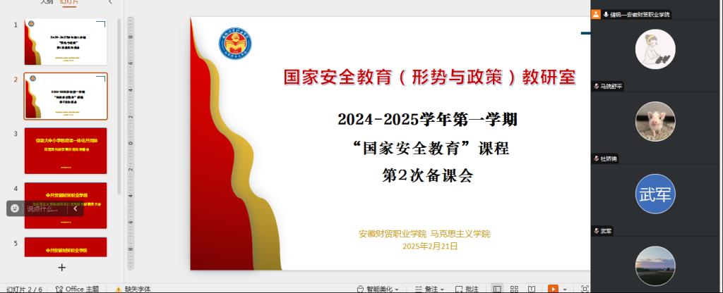 2月21日晚,马克思主义学院国家安全教育(形势与政策)教研室在腾讯会议进行新学期第一次集体备课,认真准备开学第一课。储锐主持会议,全体教研室成员及授课教师参加。