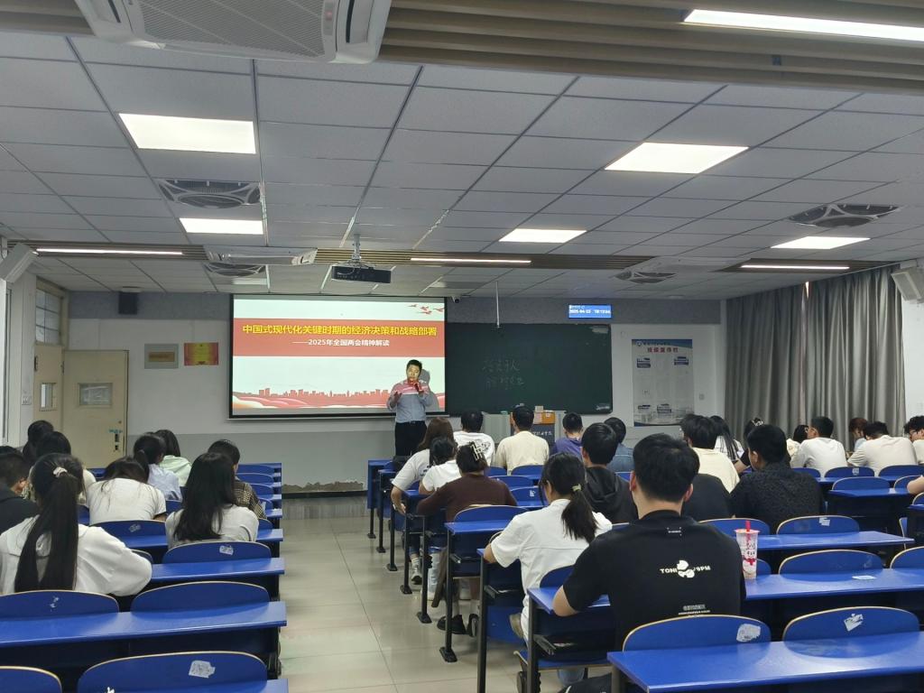 为深入学习贯彻2025年全国两会精神,推动党的创新理论落地生根,马克思主义学院习近平新时代中国特色社会主义思想概论教研室自4月起组织开展全国两会精神进课堂系列讲座活动。八位思政教师组成宣讲团队,通过专题教学引导青年学子筑牢信仰根基,勇担强国使命。