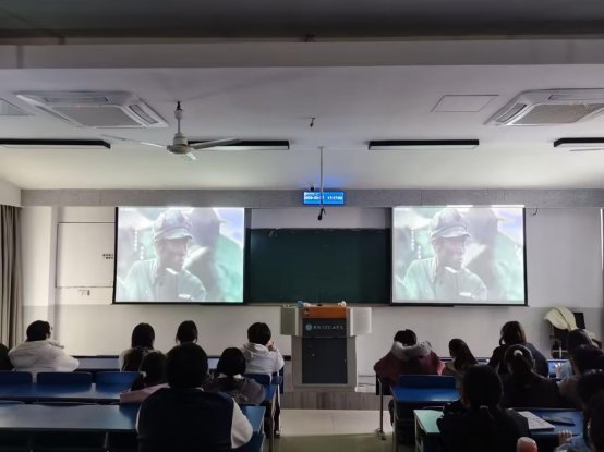 活动伊始,社团负责人介绍影片创作背景与核心主题,讲解影片以红军长征湘江战役为原型,还原革命先辈浴血奋战的悲壮历程,展现红军坚定的革命信仰与无畏牺牲精神,点明湘江战役的重大历史意义,让在场同学深受触动、倍感振奋。