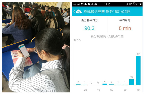 此次测试采取无纸化形式进行,利用信息化教学APP蓝墨云班课,同学们在手机上完成。马克思主义学院全体党员老师均在自己授课班级进行了此次测试。首次测试结果显示,绝大多数同学对党史党章党规知识有一定程度的了解,但是还是缺乏系统性,掌握情况也是一知半解,个别同学的学习还有待加强。