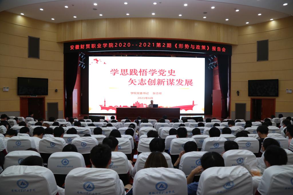6月10日晚,学校党委书记张志祥在学术报告厅作了题为《学思践悟学党史 矢志创新谋发展》形势与政策报告会,信息工程学院300余名学生代表参加报告会。