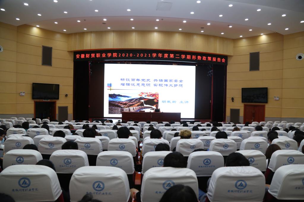 6月22日晚,学院党委委员副院长胡戴新教授在学术报告厅作了题为《畅谈百年党史 共话国家安全 增强忧患意识 实现伟大梦想》形势与政策报告会,马克思主义学院院长王良斌主持了报告会。文化创意学院300余名学生代表聆听了报告会。