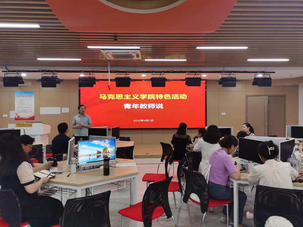9月7日下午,马克思主义学院在智慧实训室举行特色活动“青年教师说”第一期。监察审计处处长王良斌及马院全体教师参会,会议由马克思主义学院副院长崔学明主持,青年教师毕以然主讲。
