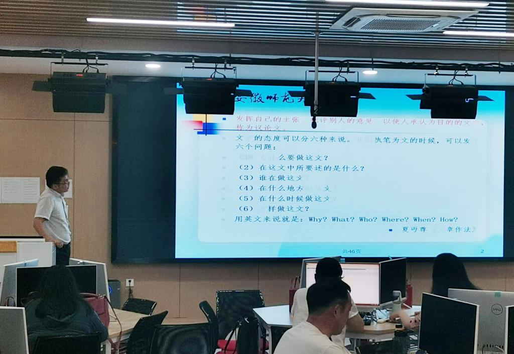 9月14日下午,马克思主义学院在智慧实训室举办“博士论见”活动第一期。会议由马克思主义学院副院长崔学明主持,青年教师刘先锐博士主讲,本次主讲的主题为《文章逻辑与语言表达》。