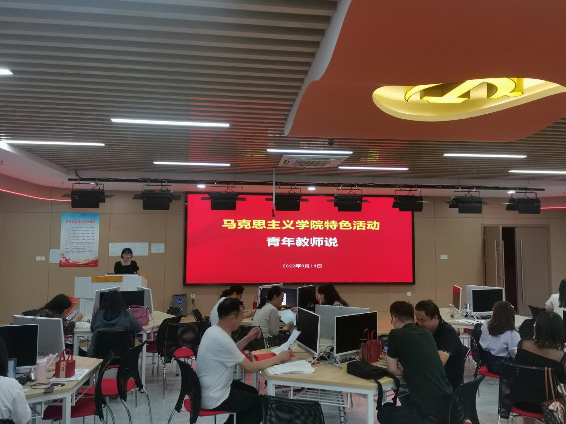9月14日下午,马克思主义学院在智慧实训室开展特色活动“青年教师说”第二期。会议由马克思主义学院副院长崔学明主持,青年教师王荟主讲,全体教师参会。