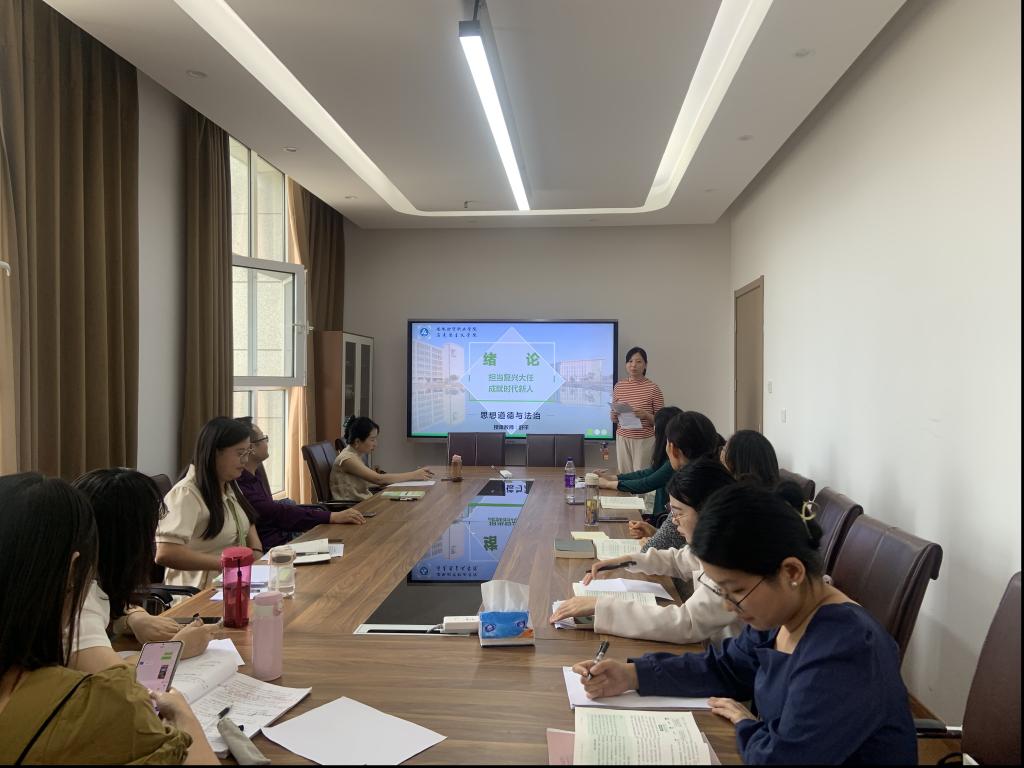 集体备课会上,各教研室围绕近期教学主题分别开展主备教师的教学设计分享和教学研讨交流活动。在习近平新时代中国特色社会主义思想概论教研室,围绕“马克思主义中国化的新飞跃”这一主题,高亢、孙全芬、储锐三位主讲教师就教学内容、授课思路、教学资源及教学重难点的处理等方面进行分享,并提出了情境互动与研讨、问题教学、视频素材对比等丰富的教学手段。在教学研讨环节,与会教师各抒己见,均认为要落实新课程的教学环节需以新方法助力课程设计,实现授课方法和形式的灵活性,充分发挥教育的延展性,进而激发学生学习的主动性。