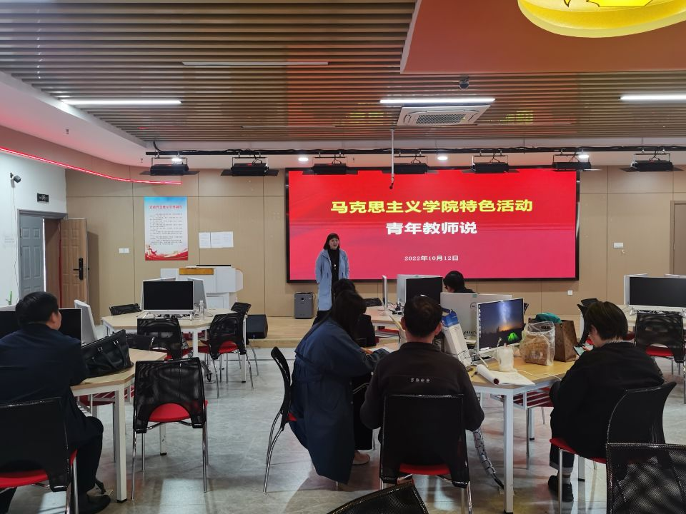 10月12日下午,马克思主义学院在智慧实训室开展特色活动“青年教师说”第五期。会议由马克思主义学院副院长崔学明主持,青年教师高亚云主讲,马院全体教师参会。