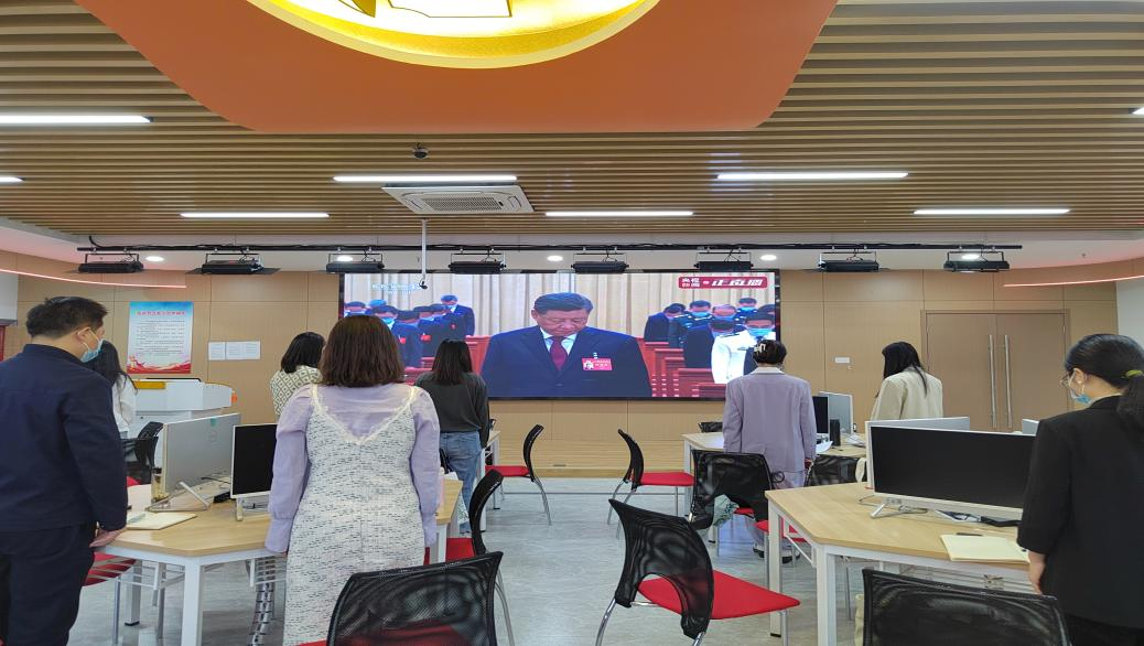 习近平新时代中国特色社会主义思想教研室组织教师集中收看收听大会盛况,一起高唱国歌、共同向老一辈已故无产阶级革命家和革命先烈默哀,聚精会神聆听报告内容、认真记笔记,参观爱国主义教育馆。