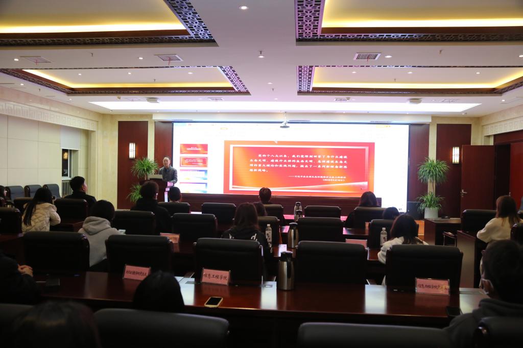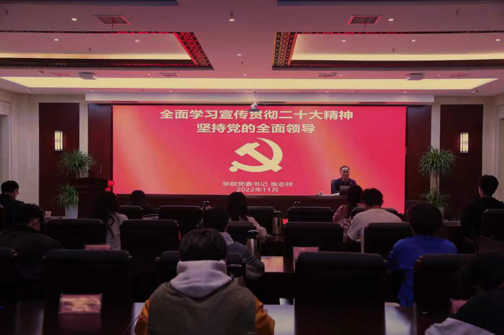 新时代号角催人奋进,新发展蓝图激荡人心。党委书记张志祥立足党的二十大报告,以《坚持党的全面领导》为主题,从为什么要坚持党的领导,怎样理解党的领导是全面的、系统的、整体的,怎样才能做到自觉在思想上政治上行动上同党中央保持高度一致等三个方面,深入浅出地阐释了坚持党的全面领导的重要性和必要性,进一步引导青年学生坚定历史自信、增强历史主动,踔厉奋发、勇毅前行,在新的赶考之路上交出优异答卷。