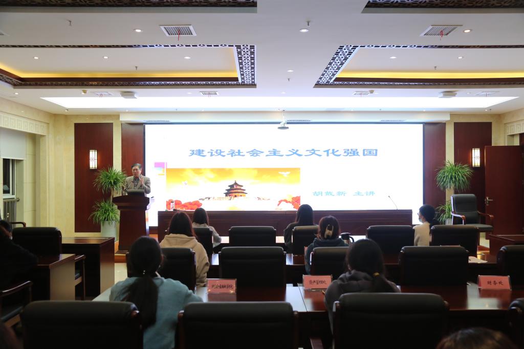 文化兴则国运兴、文化强则民族强。党委委员、副校长胡戴新以《建设社会主义文化强国》为题,从为什么建设中国特色社会主义文化、为什么要坚持马克思主义在意识形态领域指导地位的根本制度、为什么要用社会主义核心价值观凝心聚力、如何提升国家文化软实力和中华文化影响力等四个方面,引导青年学生深刻理解建设文化强国的重要意义,坚定文化自信,激发创新活力,全面增强全体师生干事创业,投身中华民族伟大复兴实践的精神力量。