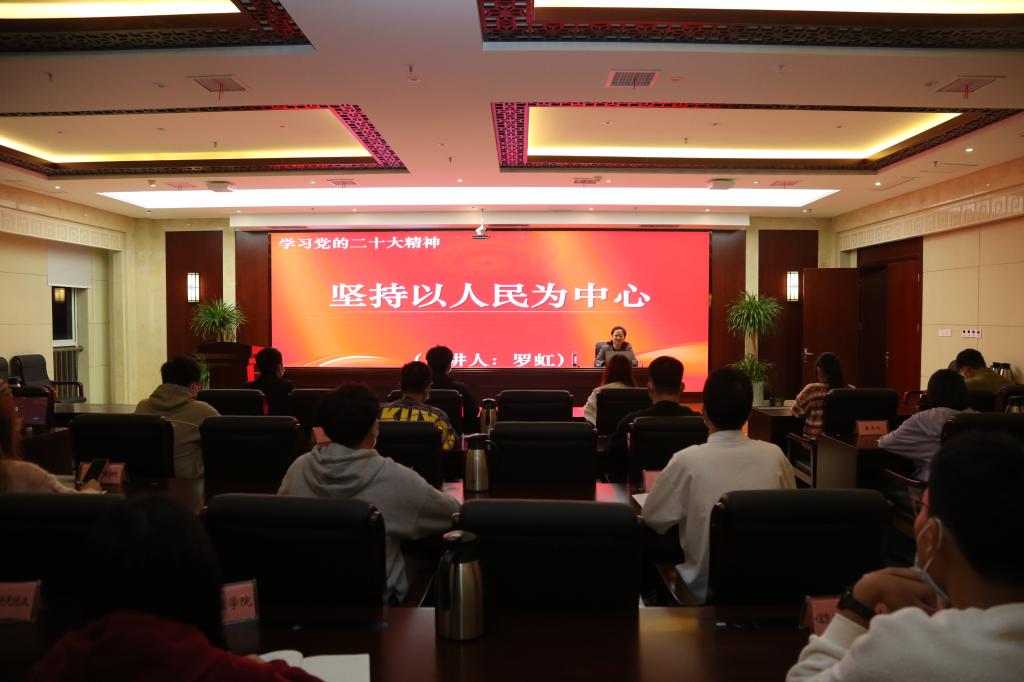 与天下同利者,天下持之;擅天下之利者,天下谋之。党委委员、纪委书记罗虹以《坚持以人民为中心》为题,从为什么必须坚持以人民为中心,如何理解不断实现人民对美好生活的向往,怎样推动人的全面发展、全体人民共同富裕等三个方面,全面阐释了“坚持以人民为中心是我们党的根本执政理念,是新时代坚持和发展中国特色社会主义的一条基本方略”这一重要论述,引导青年学生深入理解中国共产党始终坚持人民至上的价值追求和初心使命。