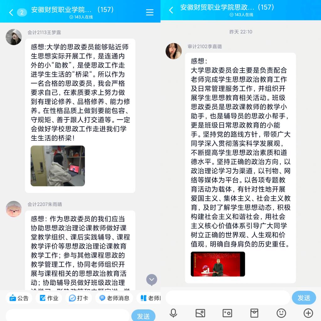 会后,思政委员们纷纷发表了自己的感想,深刻认识到班级思政委员主要是负责配合任课老师完成学生思想政治教育工作及日常管理服务工作,并组织开展学生思想政治教育相关活动。学校思政委员的设立,进一步完善了学校三全育人工作体系,将切实发挥“桥梁”作用,打通思政工作从学校层面到学生层面的“最后一厘米”。