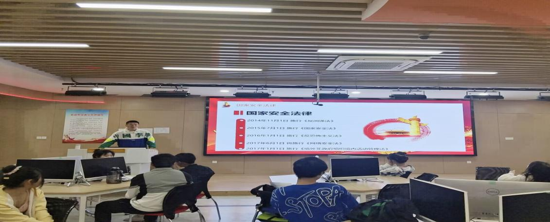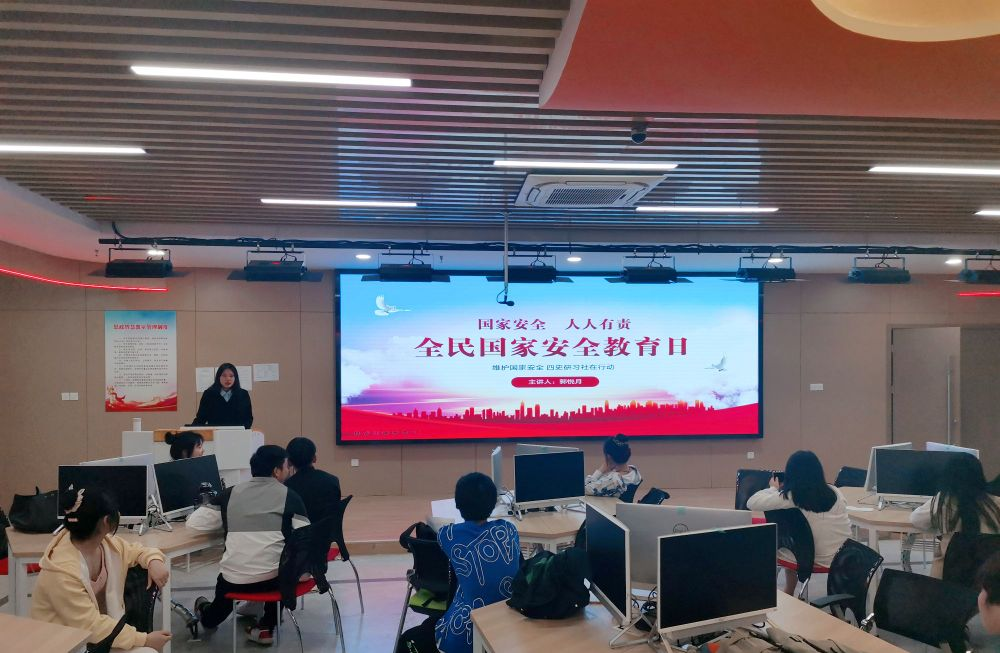2023年4月15日是第八个国家安全日,校四史研习社在智慧实训室开展国家安全主题宣讲活动,普及国家安全知识。
