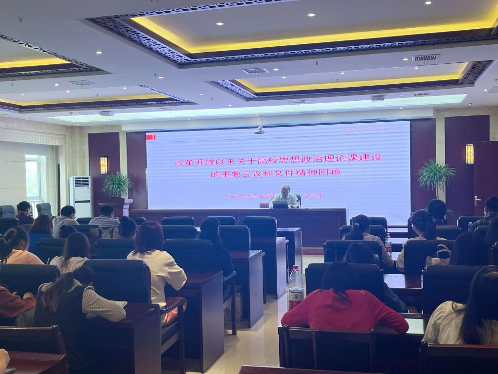 4月20日下午,安徽大学马克思主义学院党委书记潘金刚博士受邀来我院作学术报告,主讲题目为《改革开放以来关于高校思想政治理论课建设的重要会议和文件精神回顾》。马克思主义学院副院长张少兵主持报告会,全体教师及部分学生参加。