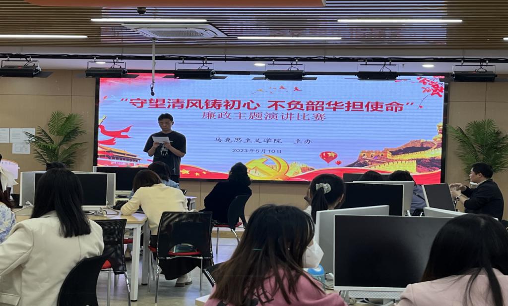 5月10日,马克思主义学院在智慧实训教室举行“守望清风铸初心 不负韶华担使命”廉政主题演讲比赛。经过初赛和复赛的层层选拔、多轮角逐,共有11名选手脱颖而出并闯入决赛,全体专职教师观看了比赛。
