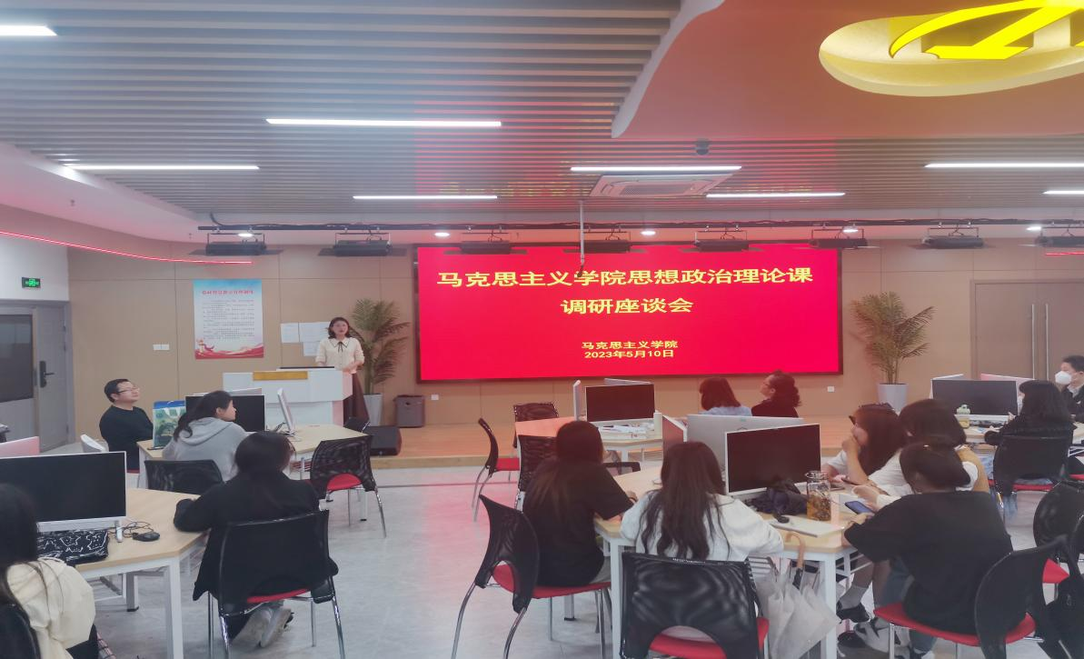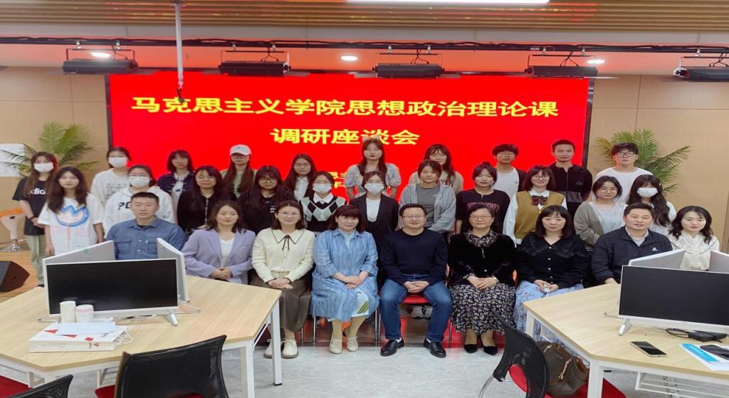 5月10日下午,马克思主义学院结合主题教育要求在智慧实训室召开马克思主义学院思想政治理论课调研座谈会。马克思主义学院全体教师、大一班级思政委员、学生代表参与,办公室主任郭清主持会议。