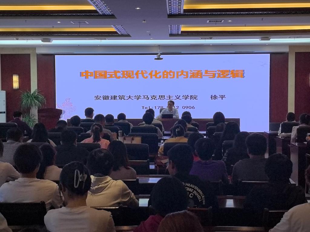11月1日下午,马克思主义学院举办“博士论见”系列活动第十四期,邀请安徽建筑大学马克思主义学院副教授徐平主讲,题目为《中国式现代化的内涵与逻辑》。报告会由马克思主义学院副院长张少兵主持,学院全体教师、党务工作专业2301班级全体同学和四史研习社社员参加。