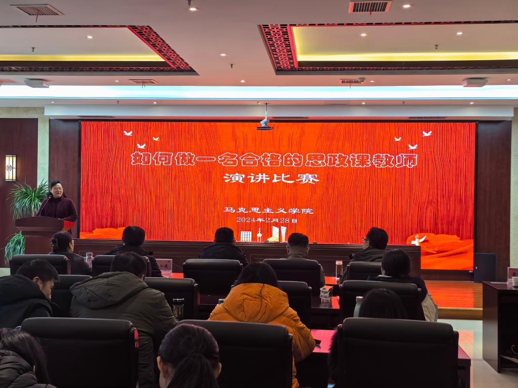 为贯彻落实3·18重要讲话精神,2月28日下午,马克思主义学院举办“如何做一名合格的新时代思政教师”主题演讲比赛。此次比赛邀请到学院办公室、组织人事处、教务处、学生处负责人担任评委,共九名思政教师作为选手参赛,马克思主义学院全体教师出席。