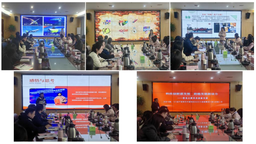 研讨会上,来自共同体成员单位不同学段的五位教师,根据各学段学情和教学要求开展实践教学,围绕“科技创新”这一主题,进行了精彩的授课展示。合肥市和平路小学东校王舒璠紧密结合本校活动,提出让思政课变得接地气,易懂易行。王丽萍借用“寻宝”“抓娃娃”等游戏模式,环环相扣,获得感强,充分调动起了学生的积极性。董云以“为什么、是什么、怎么办”的清晰思路,充分结合“科晚”,利用图文视频大大拓展了课堂空间,带领学生感受科技的美好。严昊深度结合学生专业规划和合肥科技发展战略,提出问题——解决问题——反思问题,紧紧抓住学生注意力。陆淮光侧重于理论深度的挖掘,围绕“变与不变”展开了一场紧贴时代的理论讲解。
