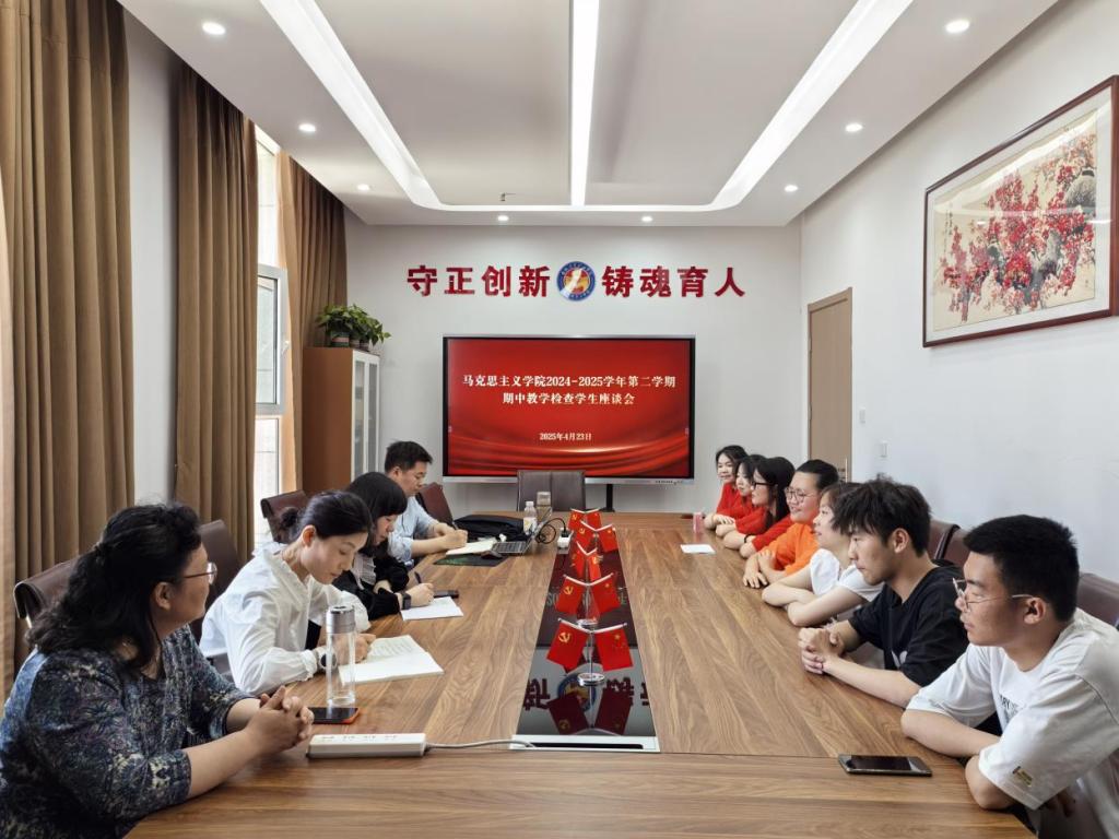 4月23日,马克思主义学院召开2024-2025学年第二学期期中教学检查学生座谈会,各教研室主任、教学秘书及党务工作专业学生代表参会。