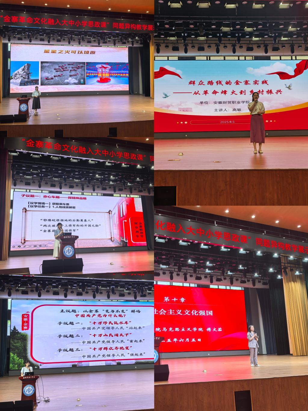 活动采用"同课异构"形式,来自合肥市和平小学、合肥市四十八中滨湖校区、合肥一中瑶海校区、beat365在线唯一官网和合肥师范学院的五位教师围绕金寨革命文化主题进行教学展示。我校高敏老师作为高职院校代表,创新性地将革命时期的群众路线与新时代乡村振兴实践相结合,通过案例分析和小组讨论,引导学生传承红色基因、践行使命担当。