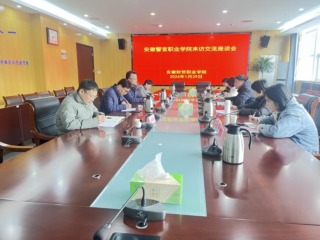 1月29日上午,安徽警官职业学院人事警卫处处长张进军、副处长姚芳等一行到我校考察交流组织人事工作。学院组织人事处处长吴元君,组织人事处相关人员参加交流座谈。