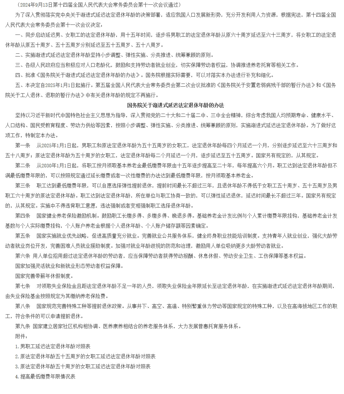 全国人民代表大会常务委员会关于实施渐进式延迟法定退休年龄的决定