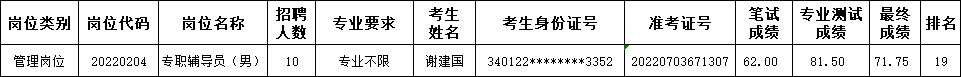 在学院2022年度编外聘用人员公开招聘中,因考生放弃,专职辅导员(男)(20220204)岗位缺额1人。
