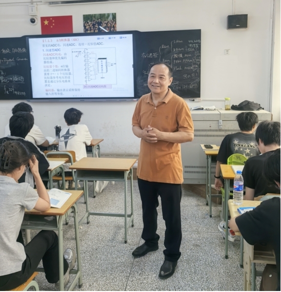 退休后的朱孝立教授依然没有停下学习的脚步,在新疆和田学院计算机与人工智能学院,他担任本科生《计算机科学导论》《数字逻辑电路》《数字逻辑实验》等课程的教学,他自信地说:“我争取让自己所讲授的每门课都示范课!”他与来自全国各高校的援疆教师以及疆内外各民族的老师一起,研究学科和专业建设,讨论实施课程建设,听课评课帮助年轻教师尽快成长,全力为这所南疆高校高质量发展做出自己的贡献。