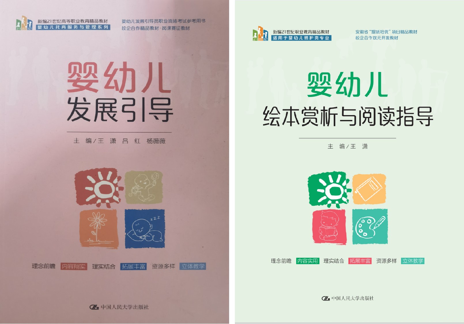 主编教材:在日常实践教学中不断创新和改革,并将这些改革创新转化为教材成果,2023年主编出版《婴幼儿发展引导》,2024年主编出版《婴幼儿绘本赏析与阅读指导》。