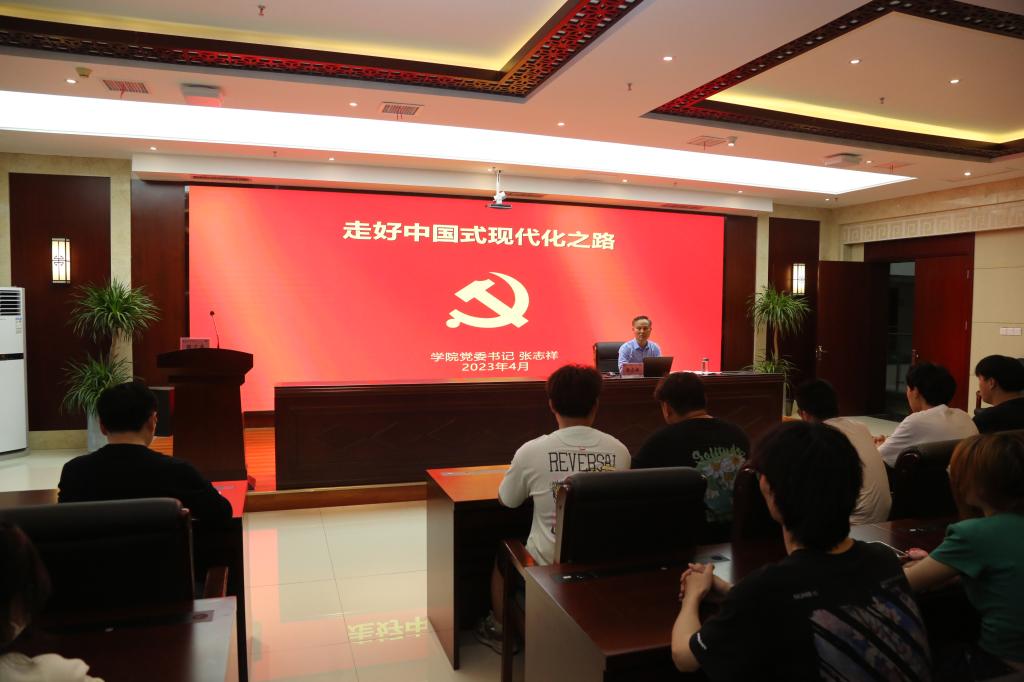 党委书记张志祥结合党的二十大报告,以《走好中国式现代化之路》为主题,从“接续奋斗,追求千年梦想”“立足国情,开辟全新道路 ”“凝心聚力,推进复兴伟业”等三个方面,深入浅出地阐述了中国式现代化的本质与走好中国式现代化的必要性。