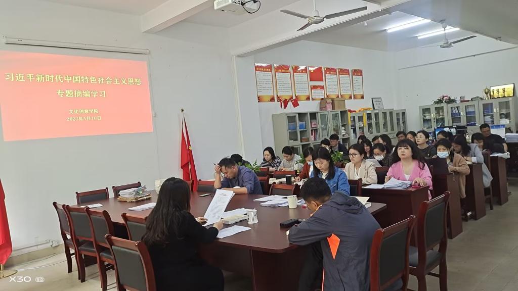 5月10日下午,文化创意学院召开学习贯彻习近平新时代中国特色社会主义思想主题教育专题学习会,会议由文化创意学院党总支副书记宋凌云主持,全体党员教师参加会议。