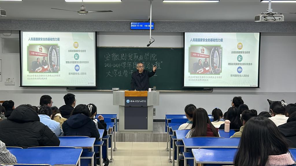 11月15日晚,2023年“青马工程”大学生骨干培训班第二场报告会在教学楼5201教室举行,本次报告会邀请到了信息工程学院党总支书记邓庆安作题为《国家安全 人人有责》的专题报告。