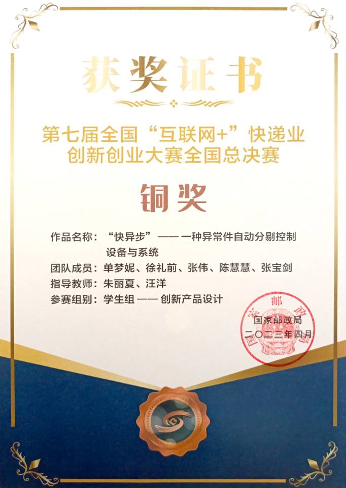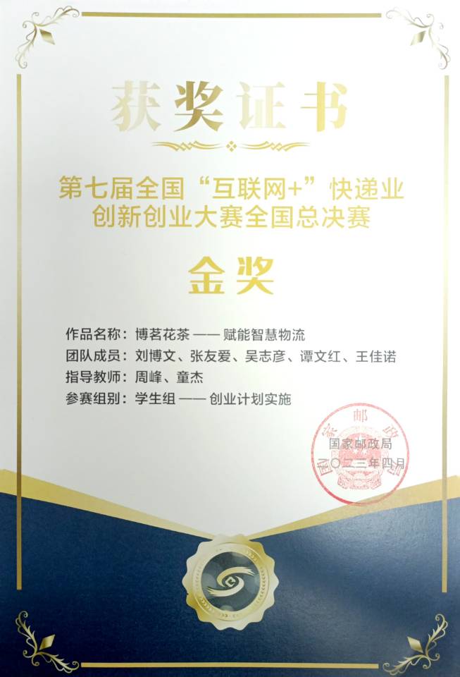 近日,国家邮政局公布第七届全国“互联网+“快递业创新创业大赛获奖结果,我校荣获1金1铜的优异成绩,并获特别贡献奖。