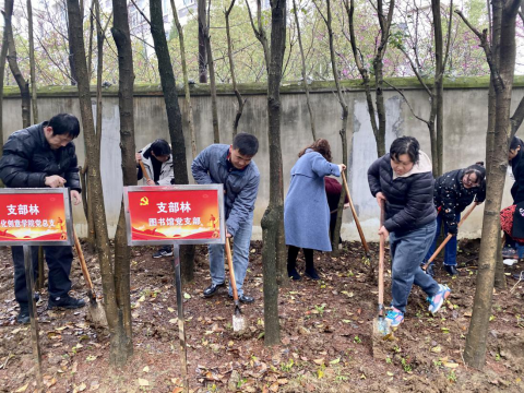 3月11日下午,图书馆党支部开展支部书记上党课活动,并赴支部林植树护林。