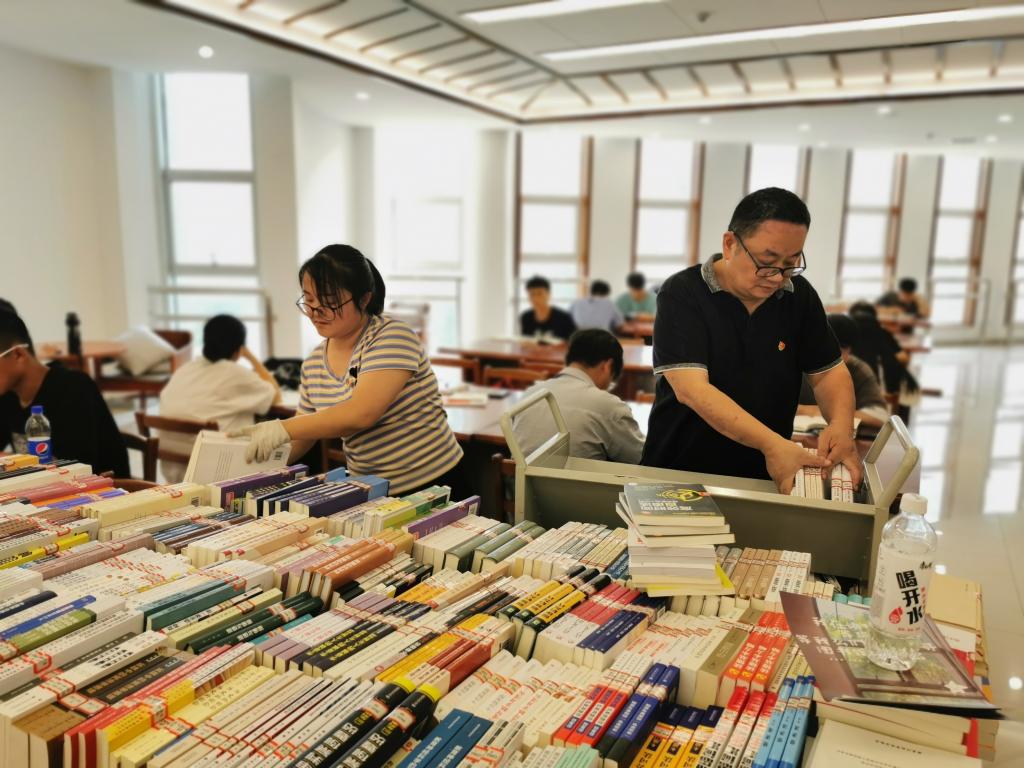 9月15日下午,图书馆党支部全体党员同志在支部书记王永平的带领下,集中到书库开展“学史力行重实干 办好实事践初心”主题党日活动,将新一批已加工完毕的图书和暑假积累的期刊分类排序上架,实现馆藏及时流通,方便读者借阅利用,切实将党史学习教育融入日常工作,激励支部党员同志传承红色基因,牢记初心使命,从党的百年伟大奋斗历程中汲取干事创业的智慧和力量,将学习成效转化为工作动力。