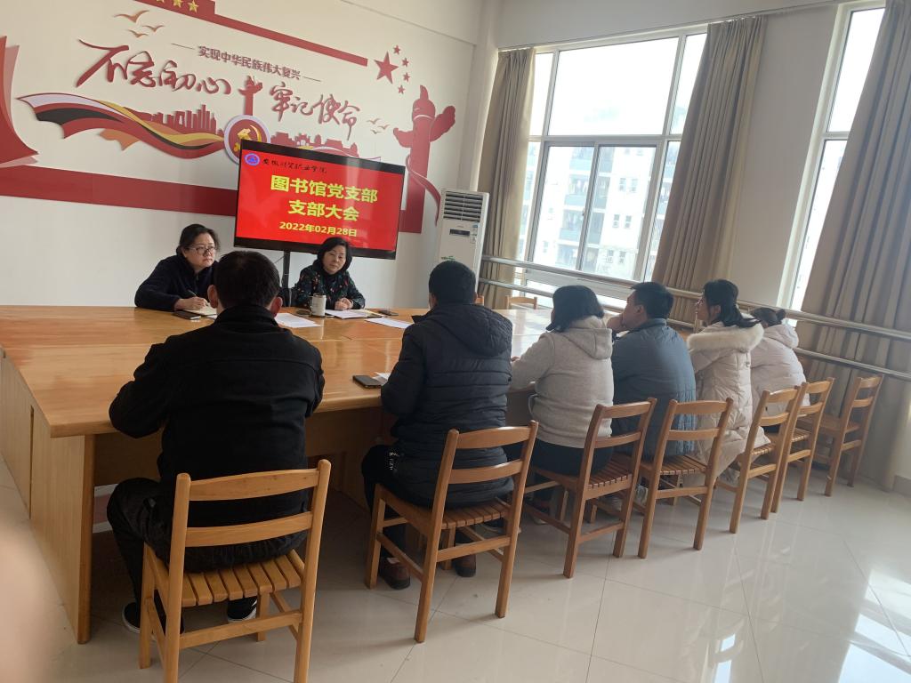 2月28日下午,图书馆党支部在支部党员活动室召开大会,全体党员同志参加了会议。会上,支部书记王永平带领大家认真学习了《习近平:继续发扬历史主动精神,以实际行动迎接党的二十大胜利召开》《关于2022年职业教育重点工作介绍》等文件精神。