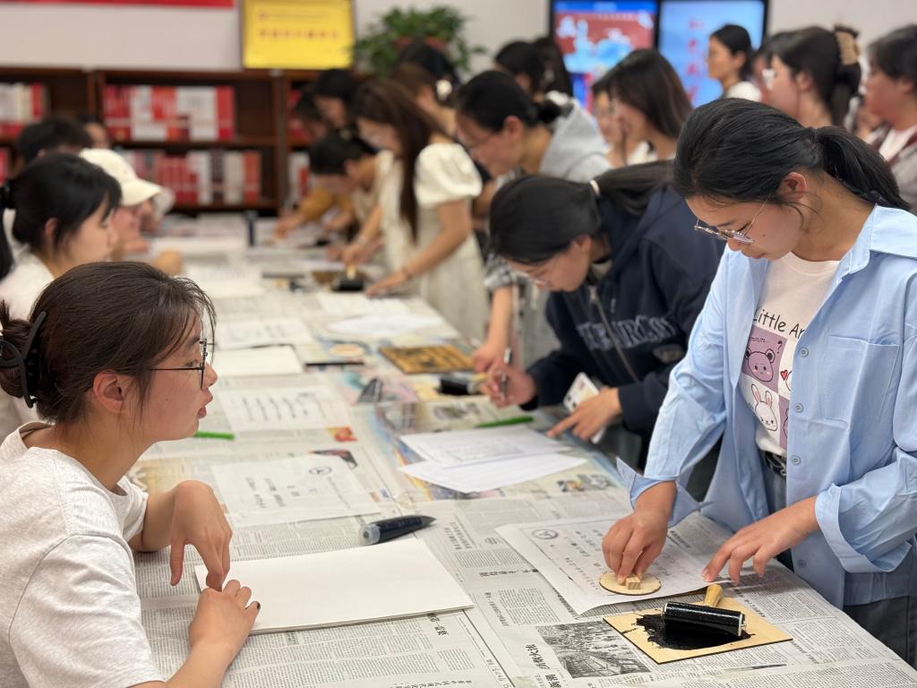为弘扬中华优秀传统文化,让非遗技艺焕发时代光彩,4月16日下午,“承古拓今 墨影留痕”非遗拓印体验活动在图书馆二楼红色阅读空间成功举办。作为第二十届读书月重点活动之一,该体验项目吸引了全校近300名师生热情参与。