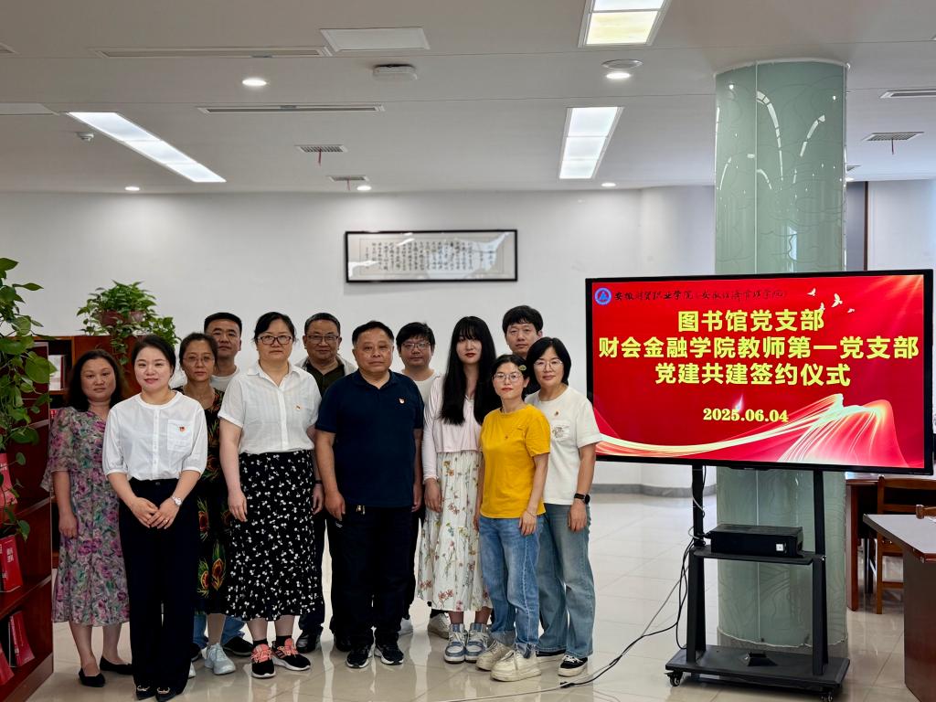 6月4日下午,图书馆党支部与财会金融学院教师第一党支部在图书馆红色阅读空间开展结对共建签约仪式。图书馆全体党员与财会金融学院教师第一党支部党员教师代表共同参加。