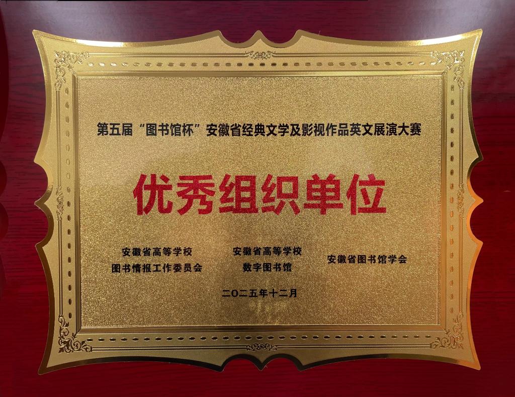 本届大赛由安徽省高等学校图书情报工作委员会、安徽省高等学校数字图书馆及安徽省图书馆学会联合主办,以“经典焕彩 · 影绎新声”为主题,吸引了全省1807支队伍,3523人参与。我校图书馆在赛事组织过程中广泛动员、精心筹备,参赛作品《功夫熊猫》以流畅的英文演绎巧妙融入中国传统文化元素,获得评委一致好评,从1082件初赛作品中脱颖而出入围现场展演环节。
