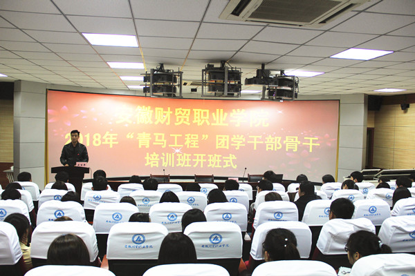 王学峰强调了此次团干培训纪律要求及注意事项,希望全体学员要利用此次学习班认真学习马克思主义理论,掌握马克思主义的基础理论和一般方法,践行实事求是的精神,理论联系实践,学以致用,将学习班的学习收获运用到专业学习、管理工作中,做坚定的马克思主义信仰者和建功新时代的青春奋斗者。校团委吕林全老师宣读了《关于举办2018年“青马工程”团学干部骨干培训班的通知》文件,校团委学生副书记、会计1703班胡海燕同学代表全体学员发言,表示将严格遵守培训纪律,认真学习,提升素养,为成为一名优秀的大学生骨干而努力奋斗。
